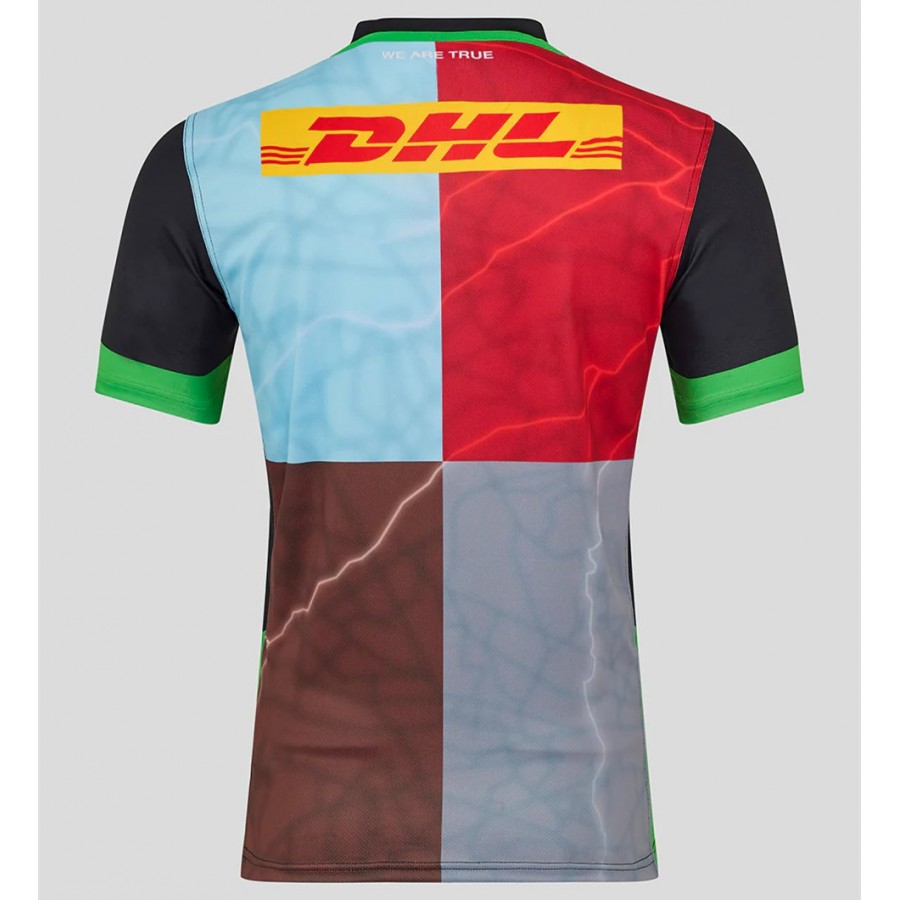 Bring some colour to your game in this Harlequins Replica 2025 Mens Home Jersey. The dynamic front and back body print is inspired by your club’s core values. Wear it with pride and absolute comfort, featuring precision-engineered fabric that breathes through intensity – from the pitch to the stands.